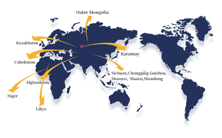 The  service  areasare  distributed  in  regionsin  China  such  as  Xinjiang  Oilfield,Shengli  Oilfield,Liaohe  Oilfield, and   Changqing    Oilfield;and   in    regions    in   foreigncountries    including    Mongolia,Kazakhstan,Iran,Afghanistan, Kyrgyzstan,and    Saudi    Arabia.