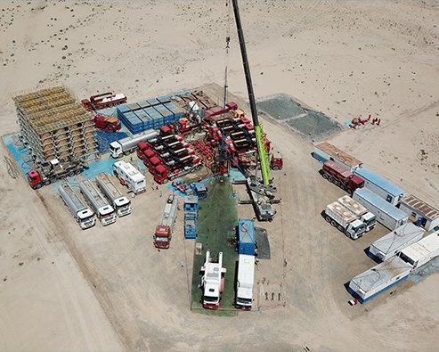正通油氣壓裂分公司有84臺(tái)壓裂車(2000型壓裂車20臺(tái)、2500型壓裂車64臺(tái))、儀表車共有5臺(tái)(杰瑞儀表車3臺(tái)、三一儀表車車2臺(tái))、混砂車共有5臺(tái)(杰瑞混砂車3臺(tái)、三一儀混砂車2臺(tái))、杰瑞高壓管匯車1臺(tái)、四機(jī)賽瓦混配撬2臺(tái),近12萬(wàn)水馬力壓裂車組。可同時(shí)開(kāi)展1-3個(gè)工作面的施工作業(yè),年施工能力在1000井層以上,施工排量可達(dá)16—18m3/min 以上,施工壓力可達(dá)120MPa, 砂比可達(dá)55%,能進(jìn)行直井、定向井、水平井的壓裂。公司所屬壓裂研究所具有壓裂設(shè)計(jì)、壓裂液配制、井下工具設(shè)計(jì)與施工等能力 Zhengtong Oil &Gas Fracturing Branch boasts 84 fracturing trucks (2000 type fracturing truck 20, 2500 type fracturing truck 64),5 instrument trucks (3 Jereh instrument trucks and 2 SANY instrument trucks),sand tank trucks (3 Jereh sand tank trucks and 2 SANY sand tank trucks),one Jereh high pressure manifold truck,andtwo SJS mixing skid.With the total capacity of the fracturing truck units of 12,000 WHP,it can carry out operations on 1-3 working faces at the same time.The annual capacity is more than 1000 well-layers,the displacement exceeds 16-18 m3/min,the constructionpressure can be up to 120 MPa,and the sand ratio can reach 55%.It can complete the fracturing of vertical wells,directional wells and horizontal wells.The fracturing research institute affiliated to the Company has the capabilities of fracturingdesign,fracturing fluid preparation,and downhole tool design and construction.